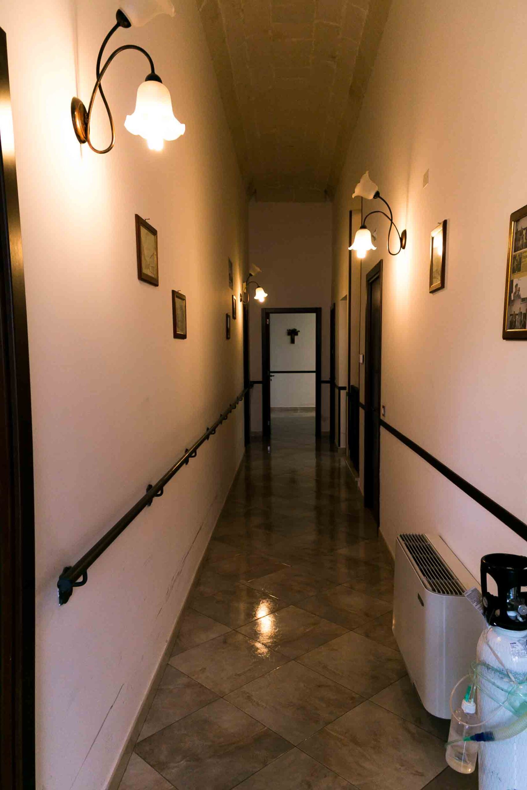 Presso la residenza per anziani salentina sono presenti delle ampie e comode camere da 2 posti letto, tutte dotate di televisione, telefono, bagno e climatizzatore. Inoltre dispongono di porta finestra e sono arieggiate. Ciascun posto letto ha un campanellino che consente di richiedere immediata assistenza al personale della struttura. I letti sono ospedalieri, confortevoli, dispongono di manovelle, spondine laterali e maniglioni anti-caduta. Ciò consente alla struttura di ospitare sia pazienti autosufficienti che semisufficienti. Gli orari delle visite vanno dalle 10:00 alle 12:00 e dalle 17:00 alle 19:00.